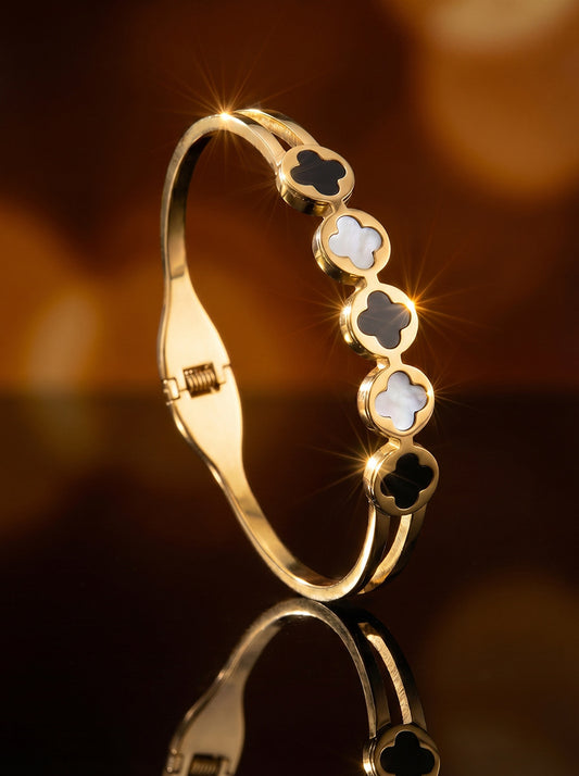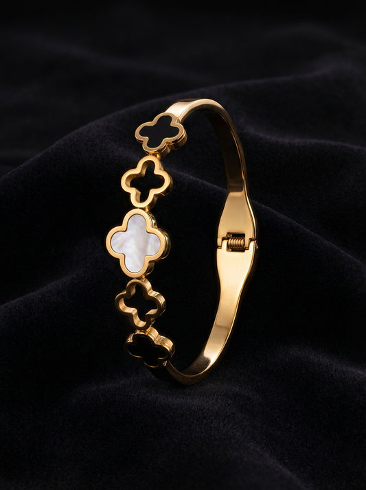 SUPÊR VÃLUE CHOICE HCSEX00030 Black and White Shell Four-Leaf Clover Bracelet