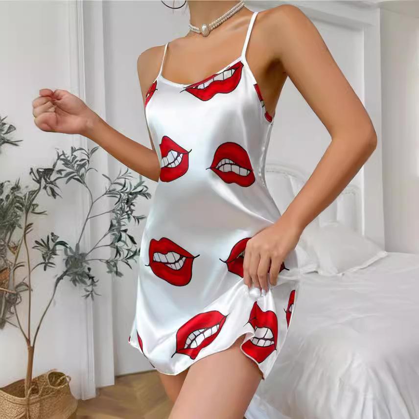 SVCP000092 Backless halter dress, silk-like nightgown, summer printed pajama short skirt, women's home wear