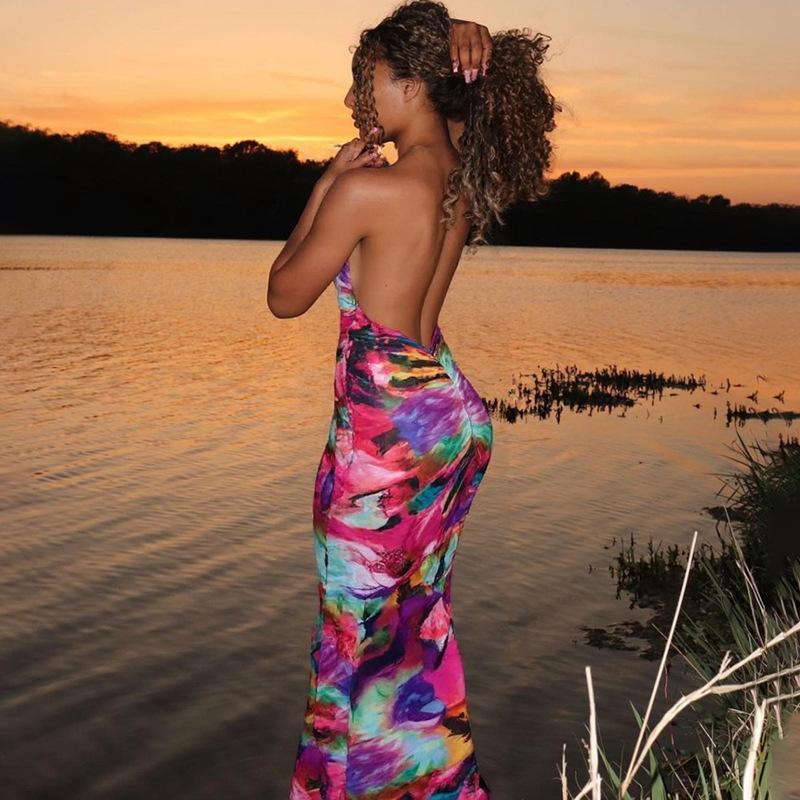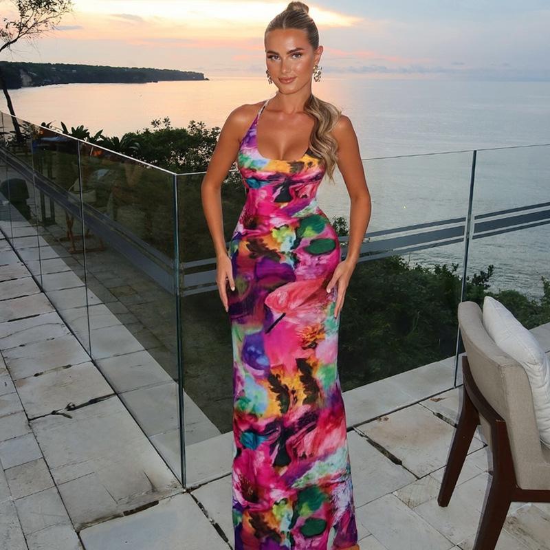 SVCD000042 Fashionable, halter-neck, sexy, see-through, backless, figure-hugging dress for women