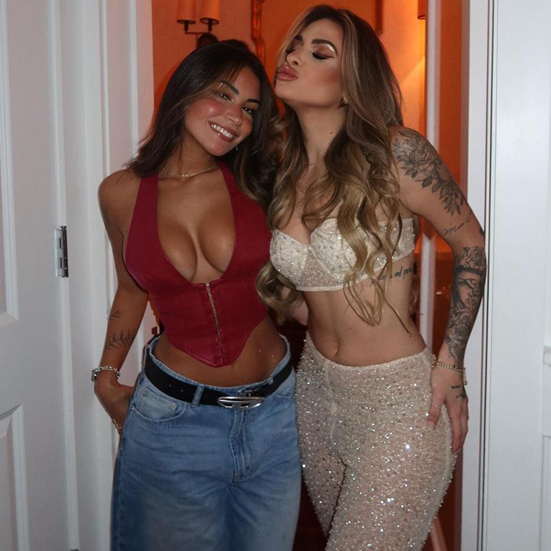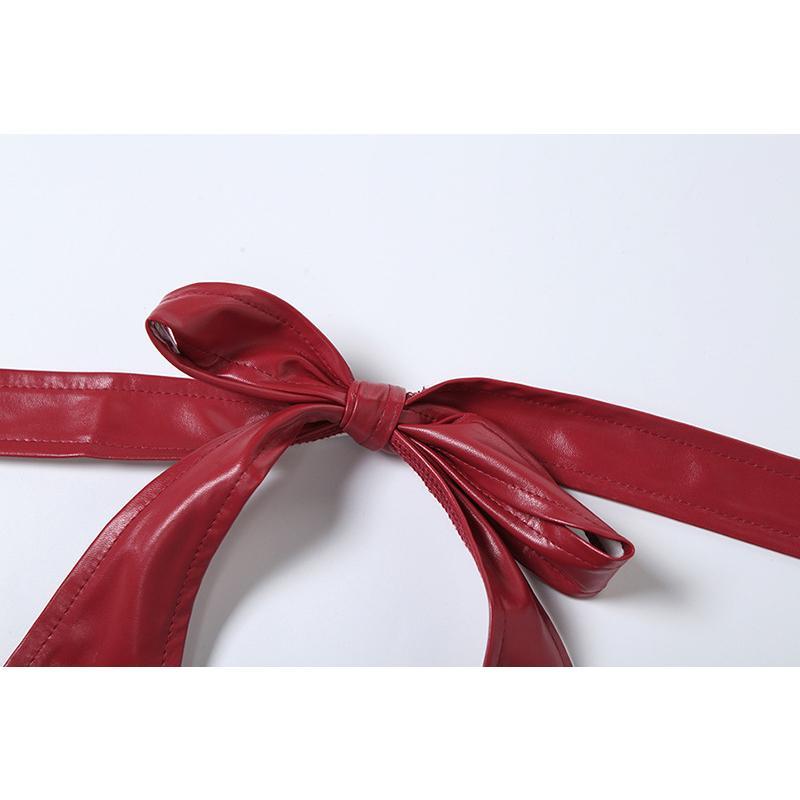 SVCST000044 Hot and sexy PU leather halter top with button fasteners