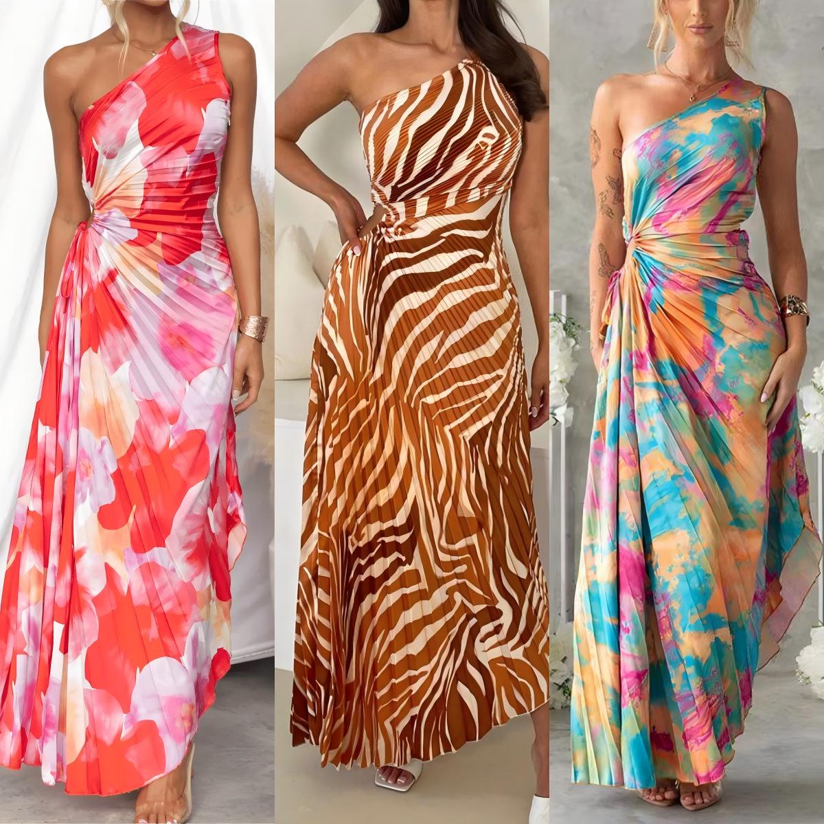 SVCD000064 Single-shoulder sleeveless dress with a sense of design, lace-up and embossed printing