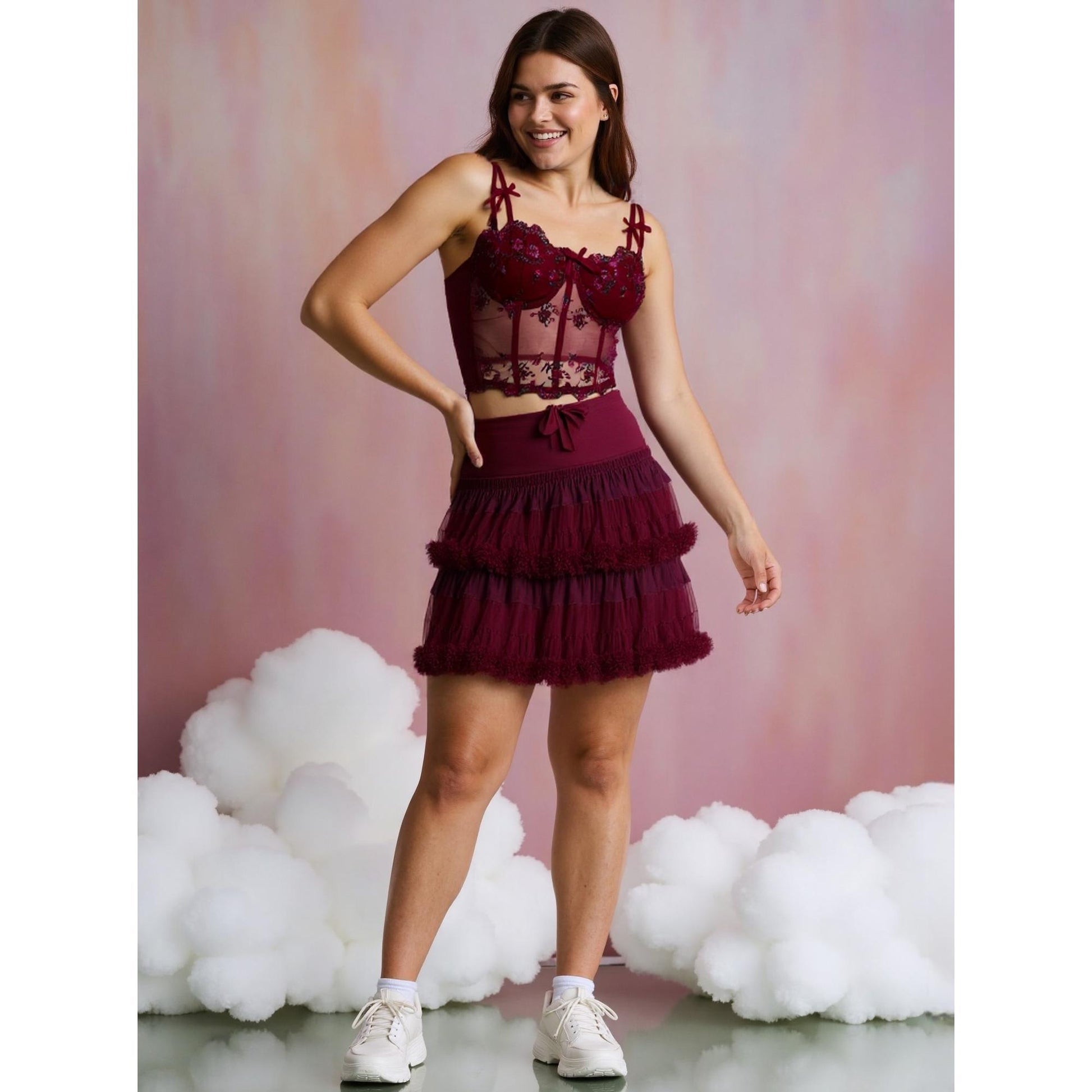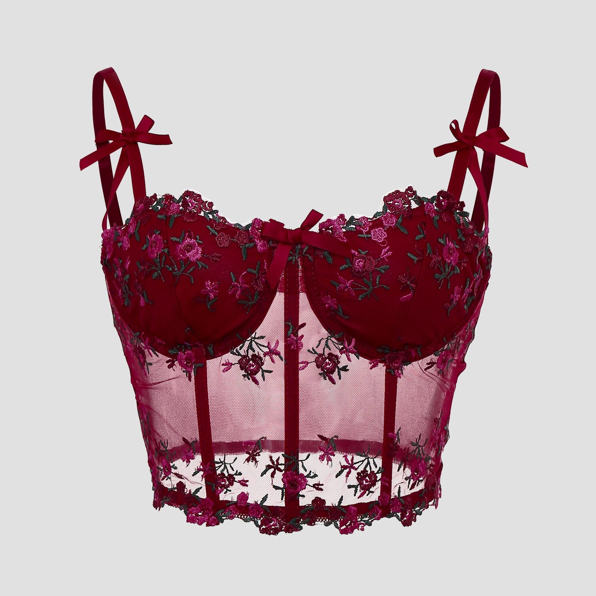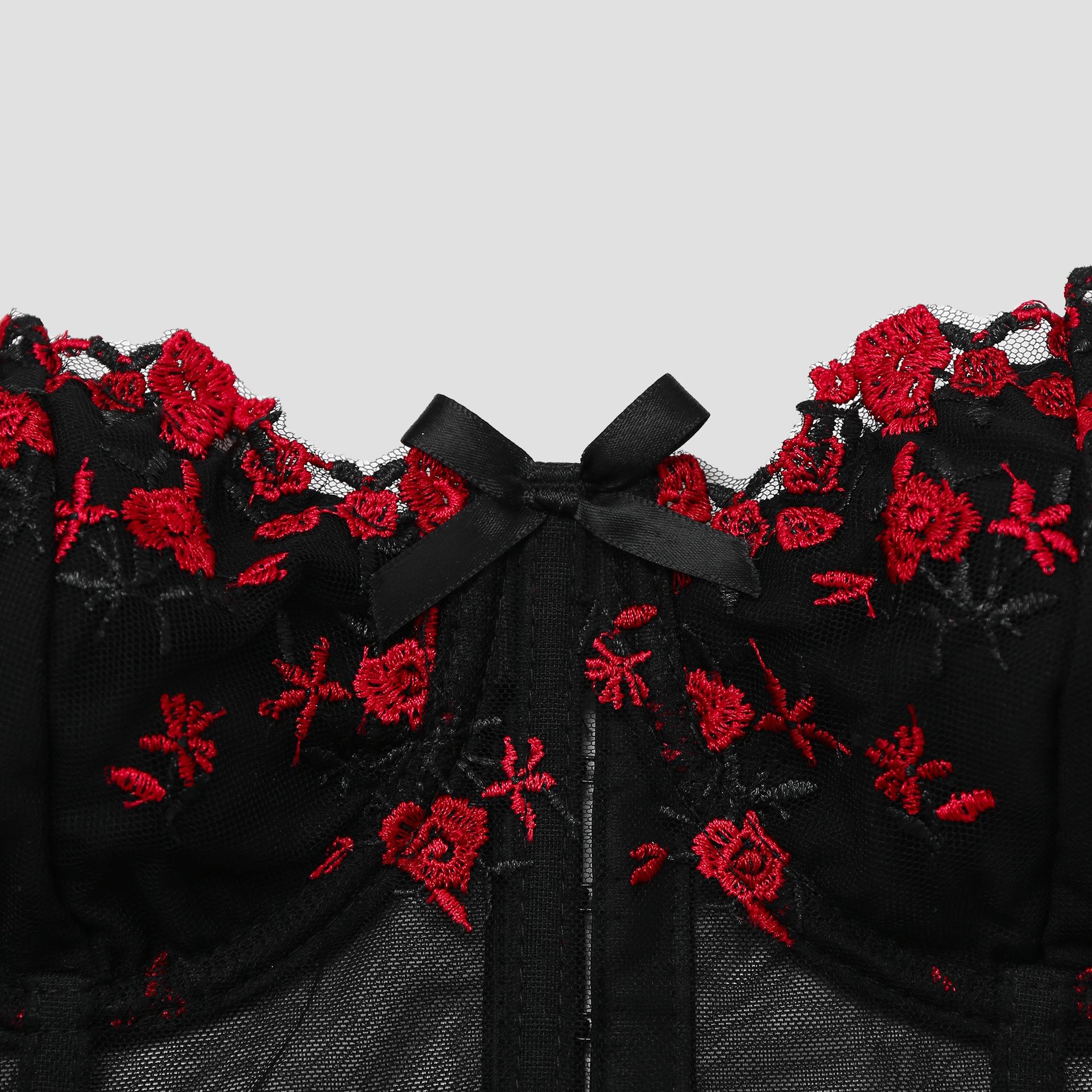 SVCT000086 Steel hoop corset, see-through embroidery, floral bow, fishbone breasted vest