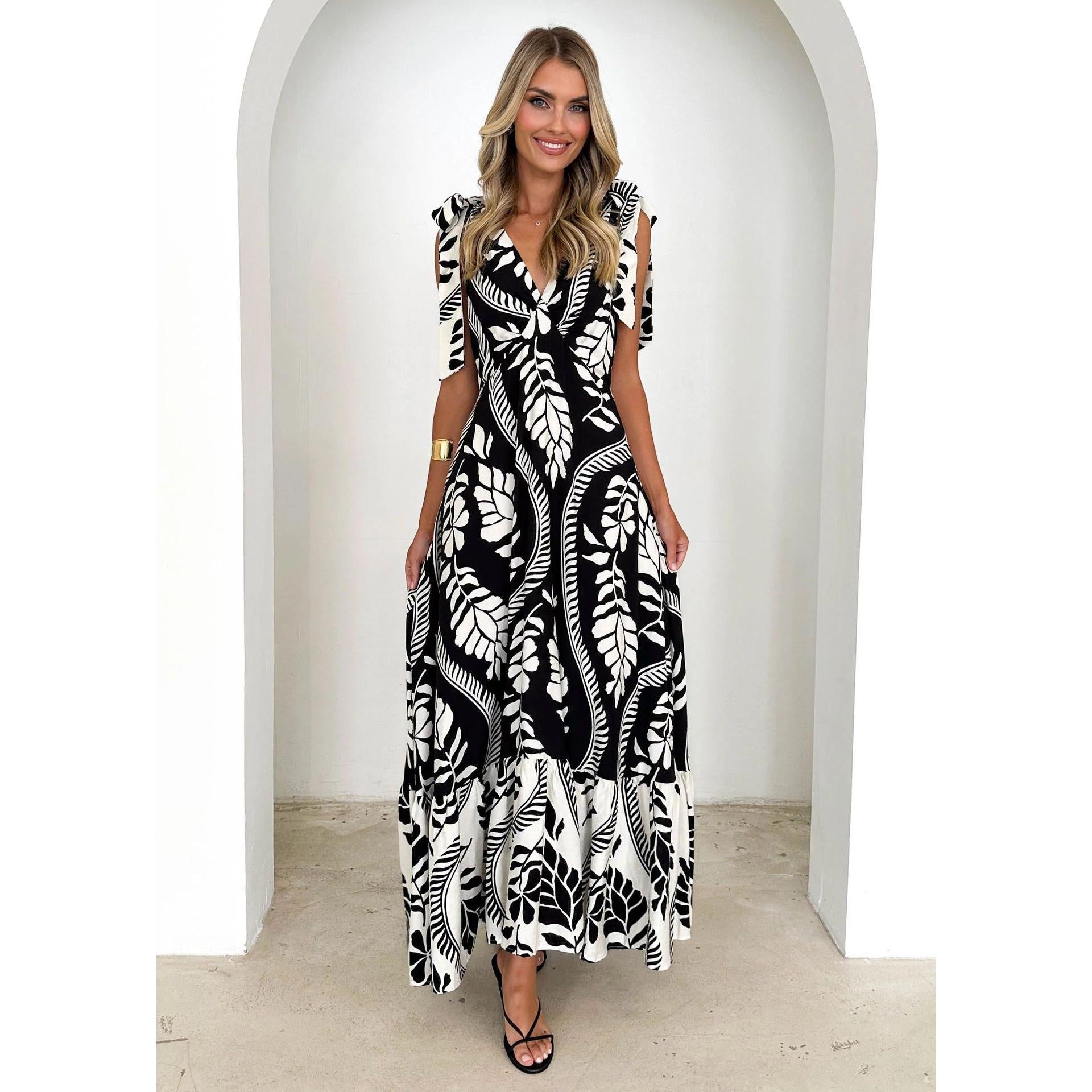 SVCD000123 Summer fashion women's long V-neck sleeveless Bohemian-style dress