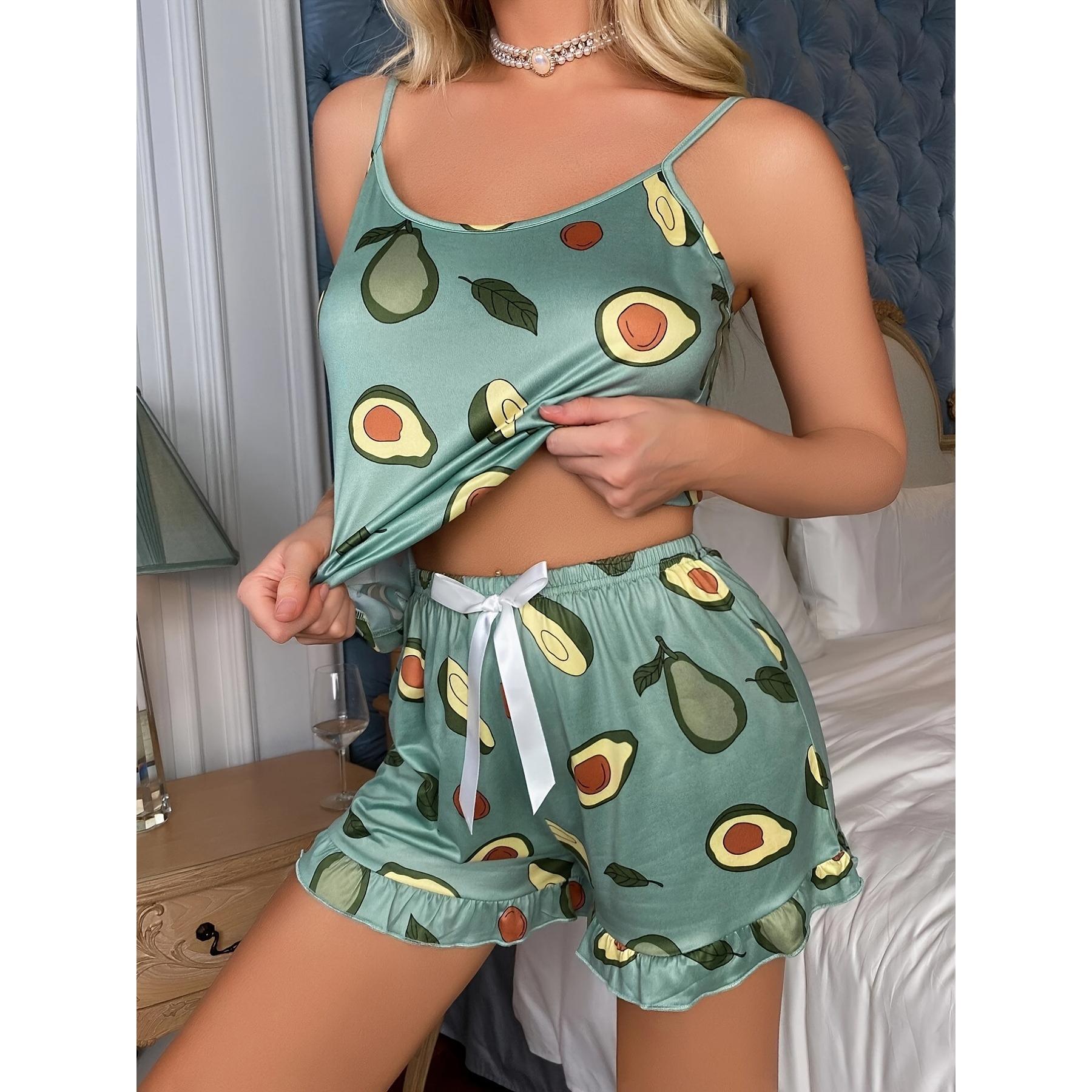 SVCP000113 Women's plus-size pajamas, avocado printed casual halter nightgown, thin home wear set
