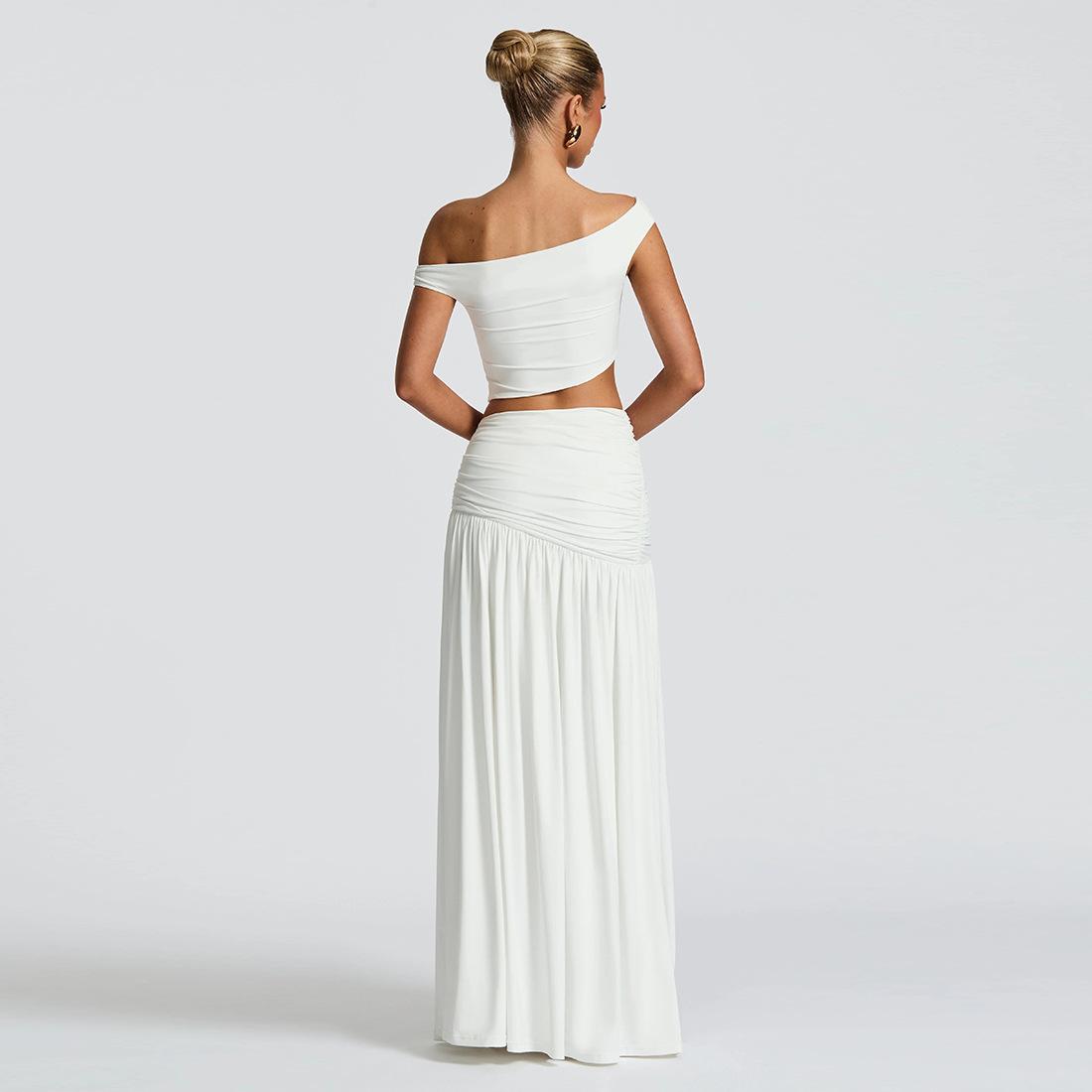 SVCM000047 Women's sexy off-the-shoulder crop top T-shirt, vest, slimming side slit skirt set